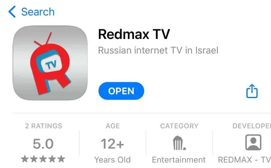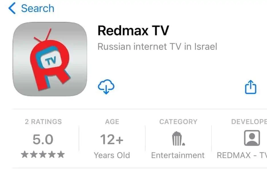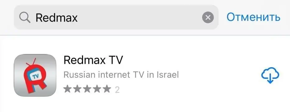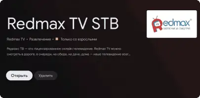 В поисковой строке вводим “Redmax TV” и нажимаем Поиск. Выберите приложение после того как оно было найдено.