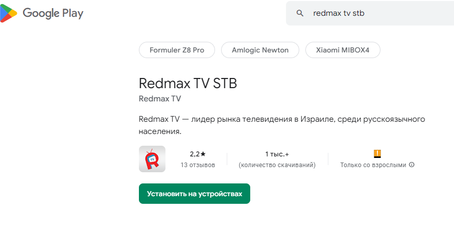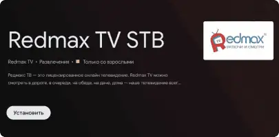После этого Вы увидите найденное приложение “Redmax TV”. Выбираем приложение и нажимаем на кнопку “Установить”.